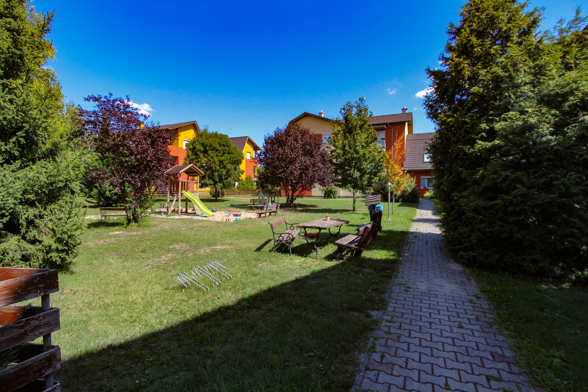 A közelben Óvoda, Iskola, Oázis szabadidő központ, számtalan bevásárlási lehetőség ALDI,LIDL stb…...A lakóparkban található egy kitűnően ellátott, a hét minden napján nyitva tartó ABC. Ezenkívül Pékség ,és , fodrász, kozmetikus, műkörmös ,áll a lakók rendelkezésére..