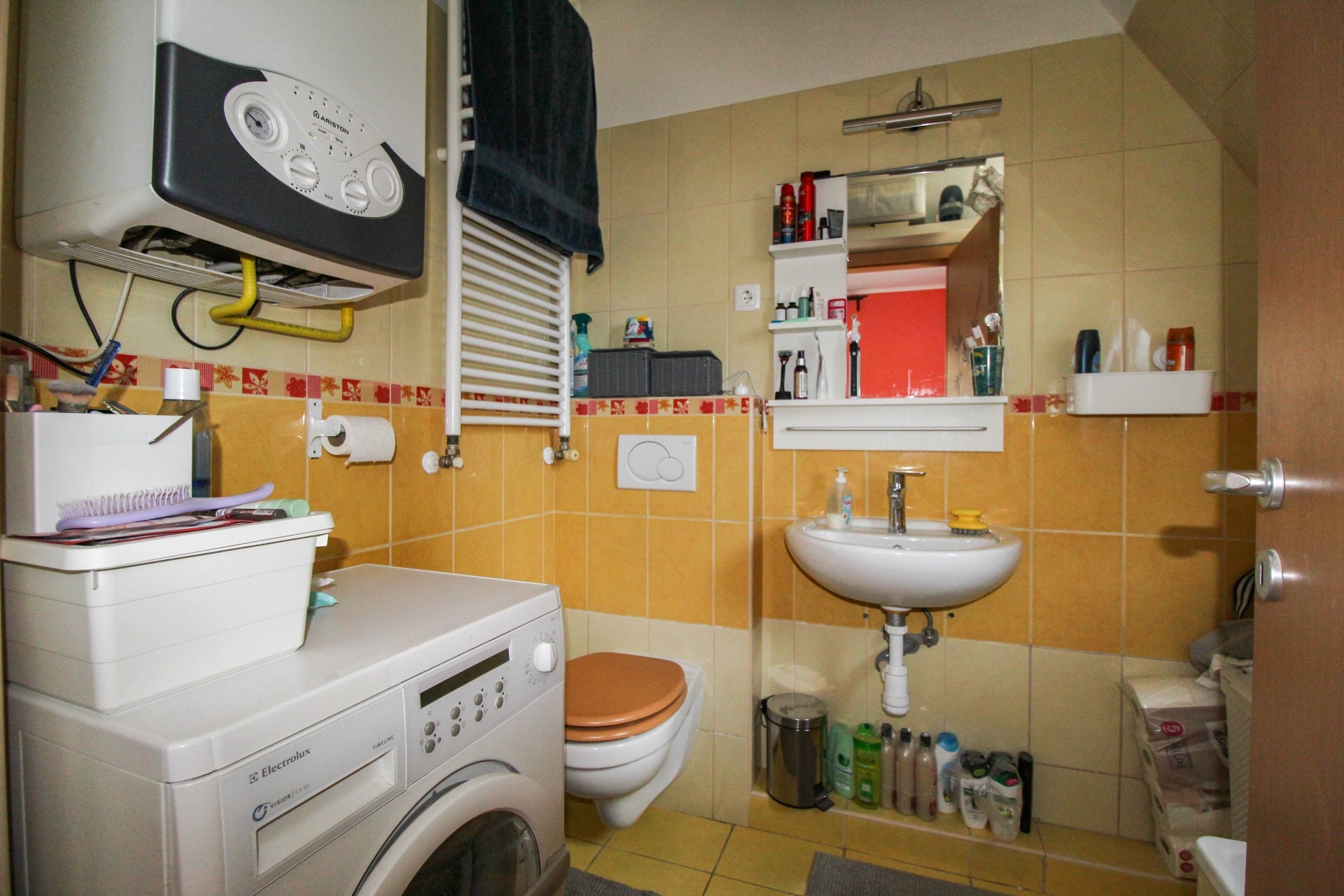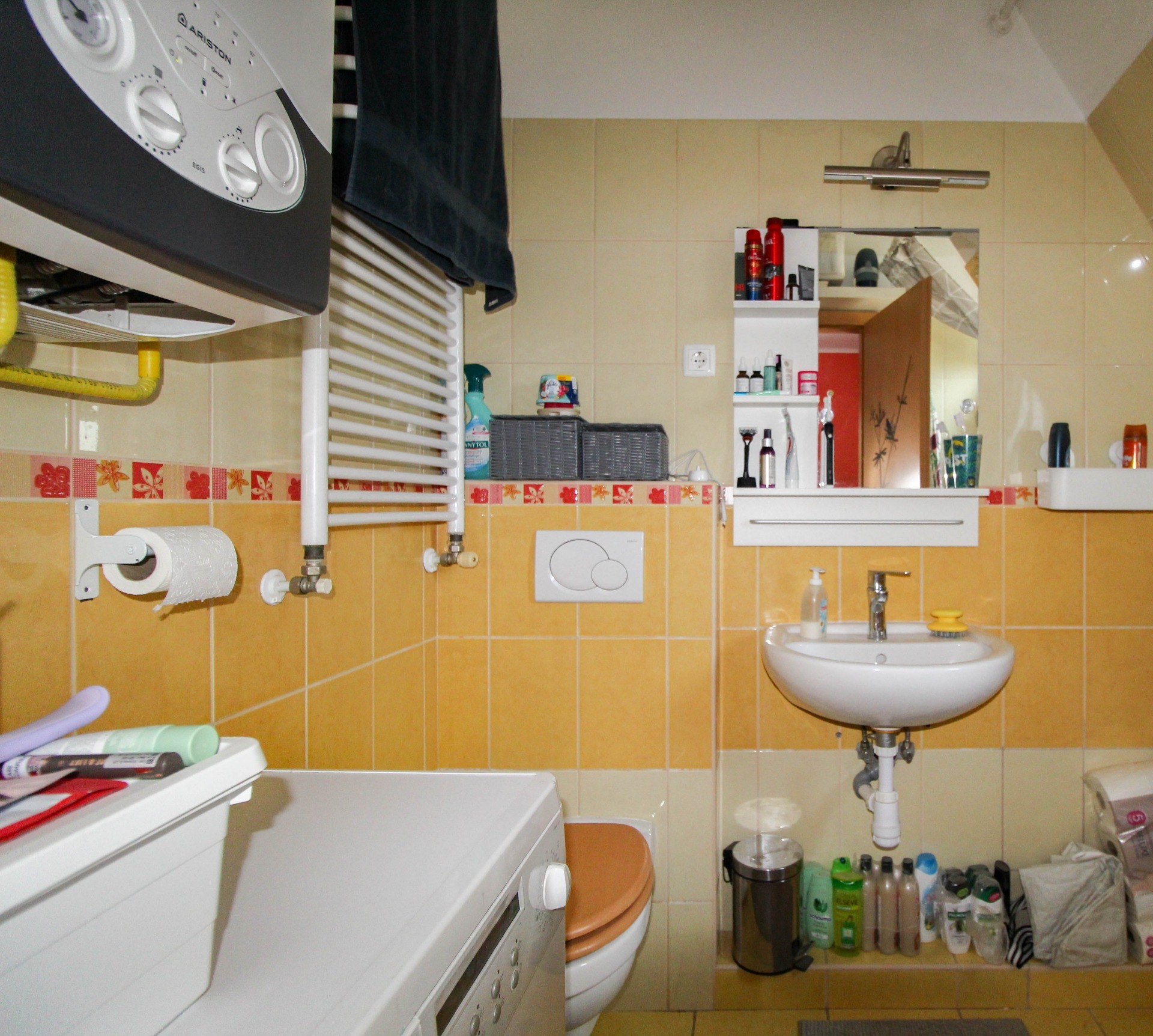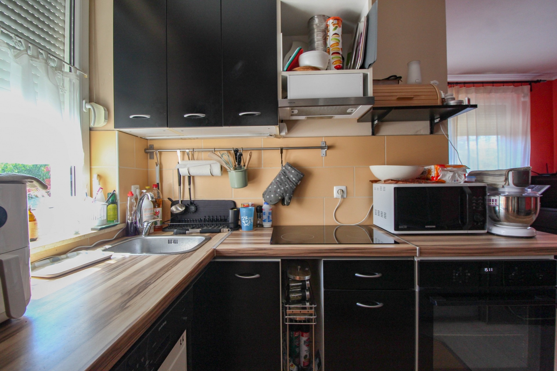 A lakásban található egy beépített szekrény, konyhabútor, valamint egy klíma a kényelmes hőmérsékletért. A lakáshoz tartozik egy dupla autóbeálló is a ház előtt.